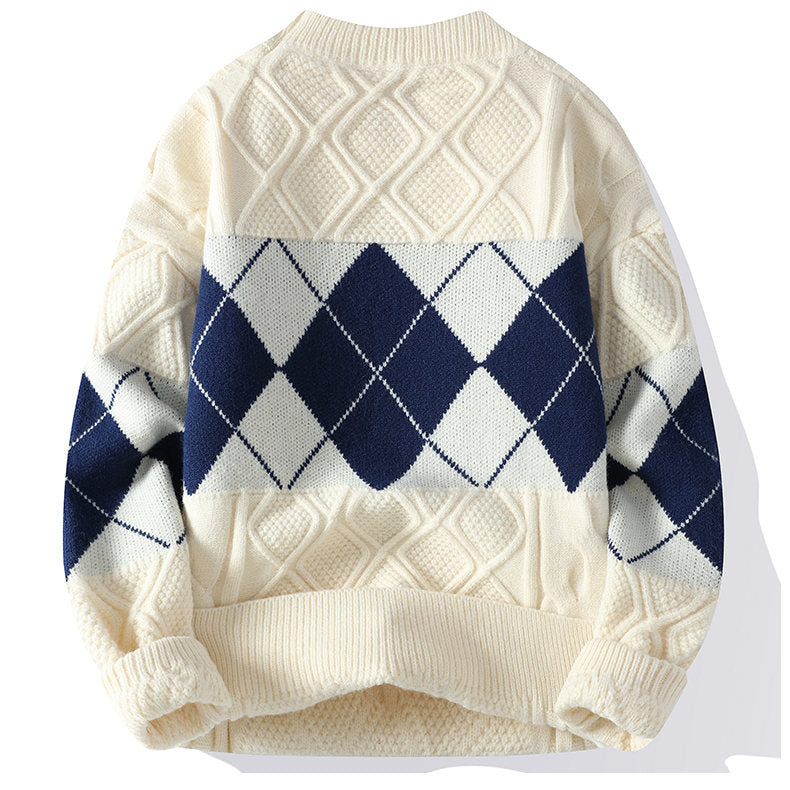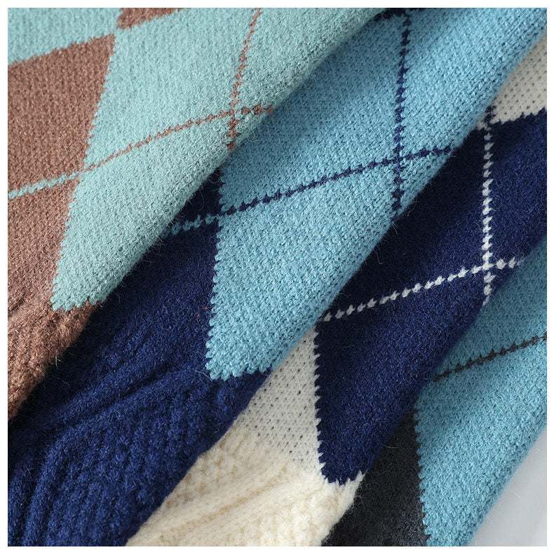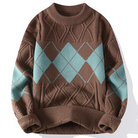 Wrap yourself in the cozy warmth of this premium wool blend sweater, featuring a classic argyle design and intricate textured stitching. The soft and breathable knit offers a snug yet lightweight feel, perfect for layering or as a statement piece for chilly days.