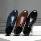 Step into luxury with these genuine leather oxfords, featuring a closed laced system with a polished finish and a cushioned sole for all-day comfort, making them perfect for business or formal wear.