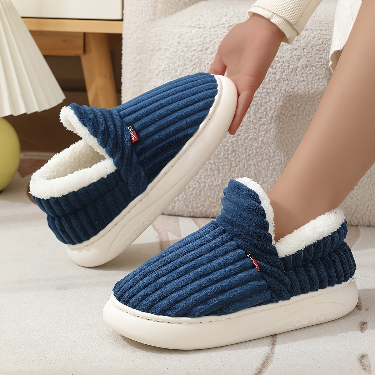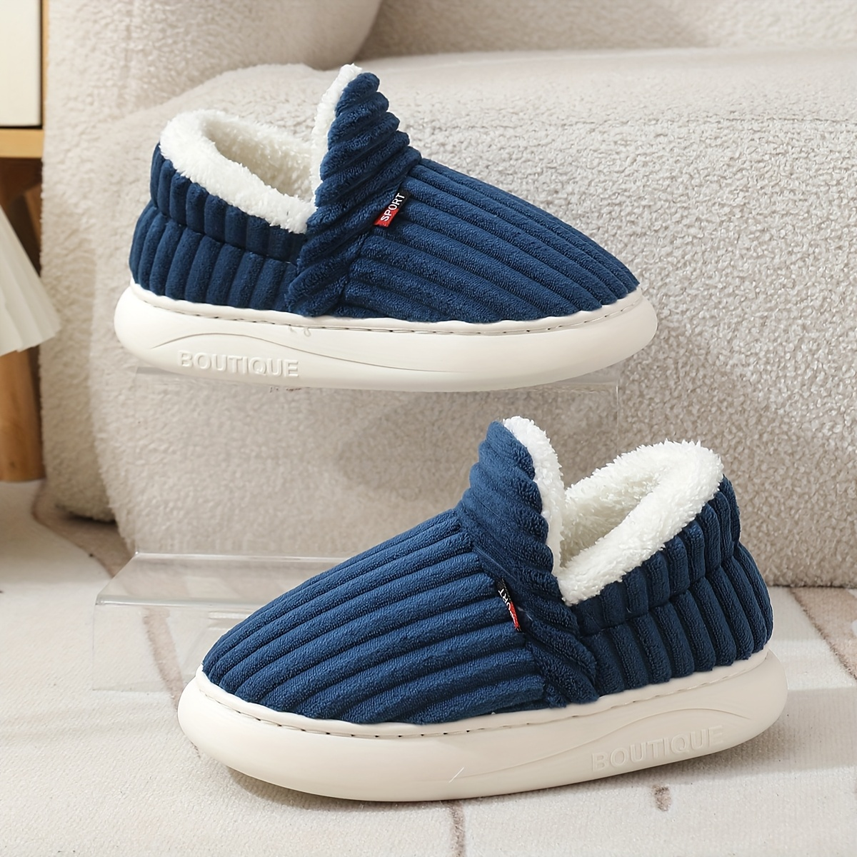 Slip into comfort with these slippers lined with soft sherpa fleece, perfect for keeping your feet warm and cozy at home. The non-slip rubber sole ensures comfortable walking, indoors or out.