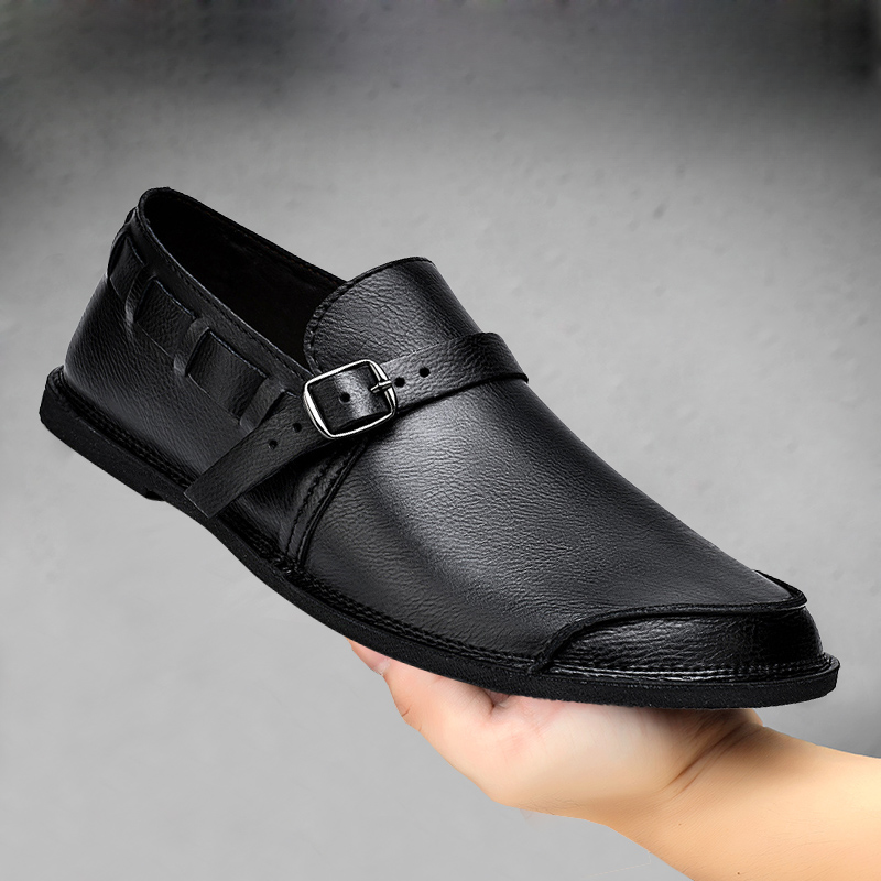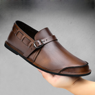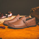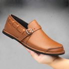 Crafted from genuine leather, these loafers feature premium construction with an adjustable buckle strap for a customized fit. The cushioned footbed provides unmatched comfort for all-day wear.