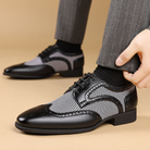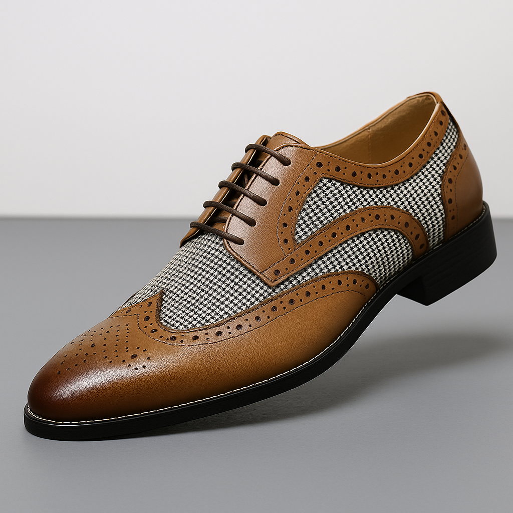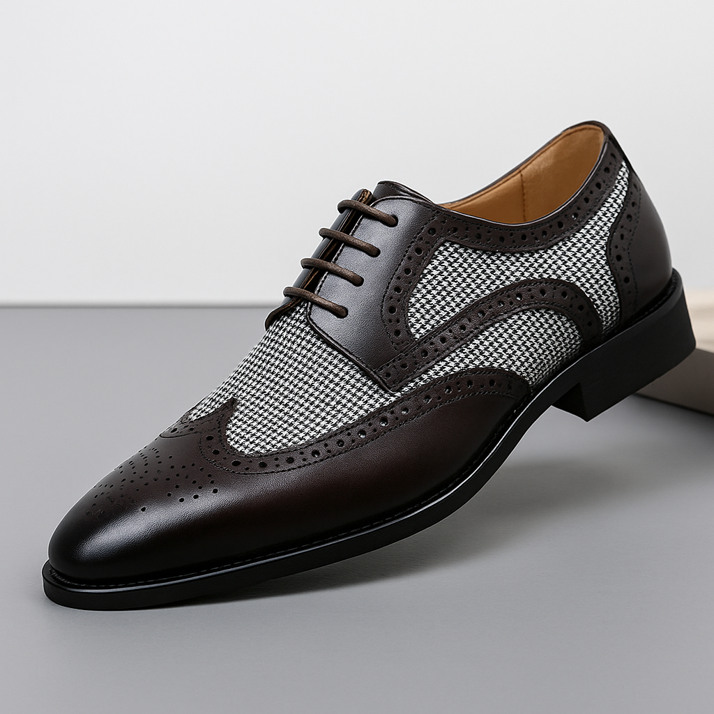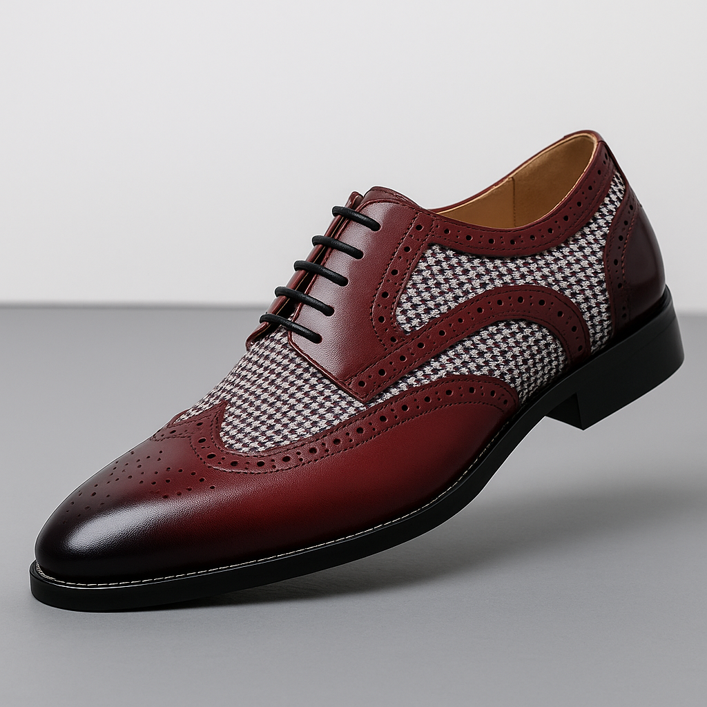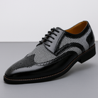 Crafted from genuine leather with a bold houndstooth pattern, these dress shoes combine a sleek profile with wearable comfort. The breathable lining and supportive heel promote a smooth roll through each stride, keeping each step light yet grounded.