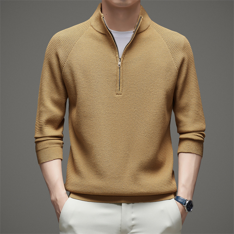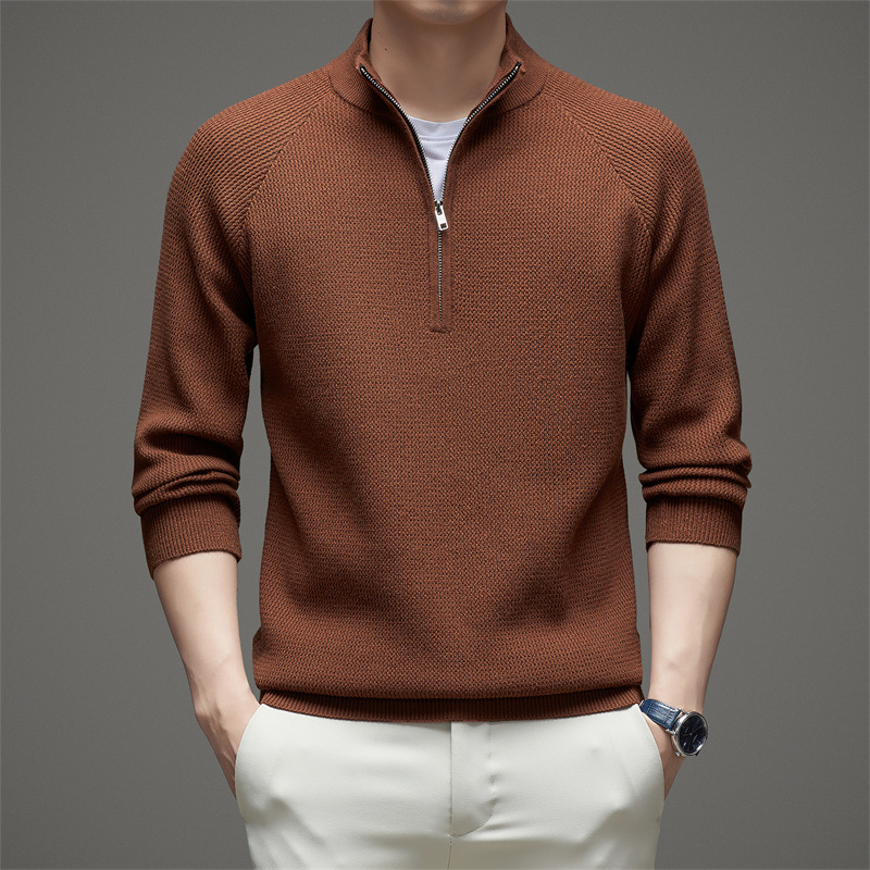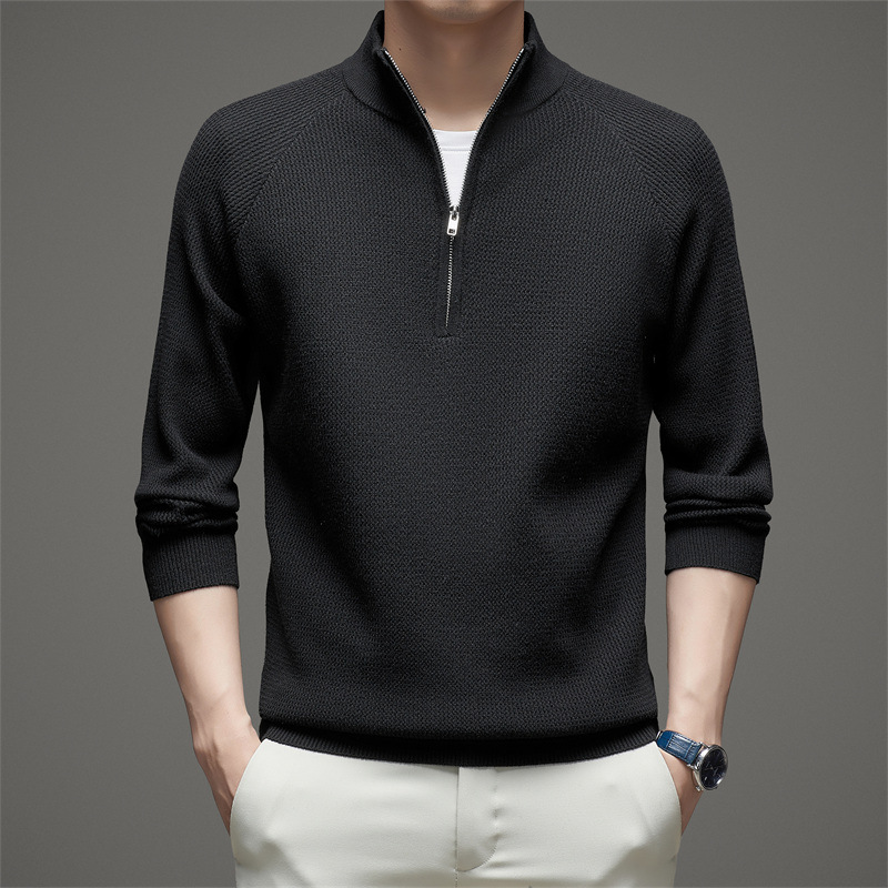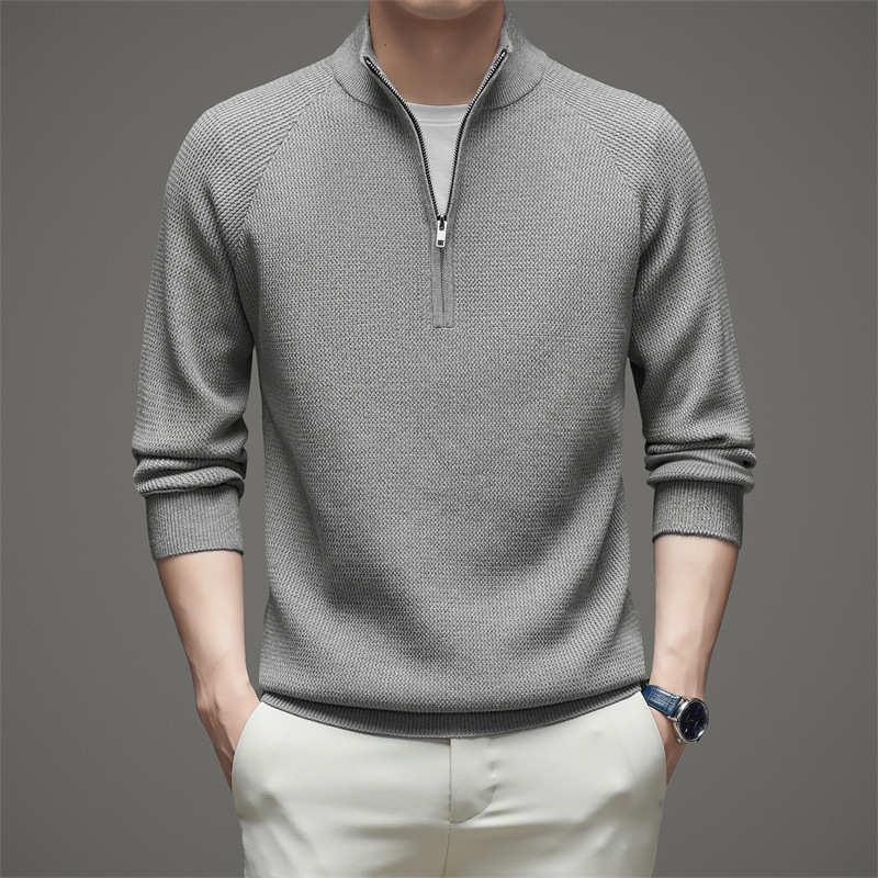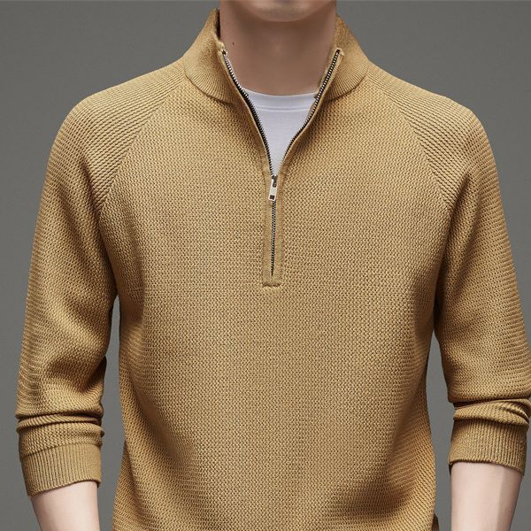 Crafted from premium soft-knit wool blend for unmatched comfort and timeless style. Featuring a sleek quarter-zip design and textured weave, this sweater is perfect for layering or wearing on its own for a polished yet casual look.