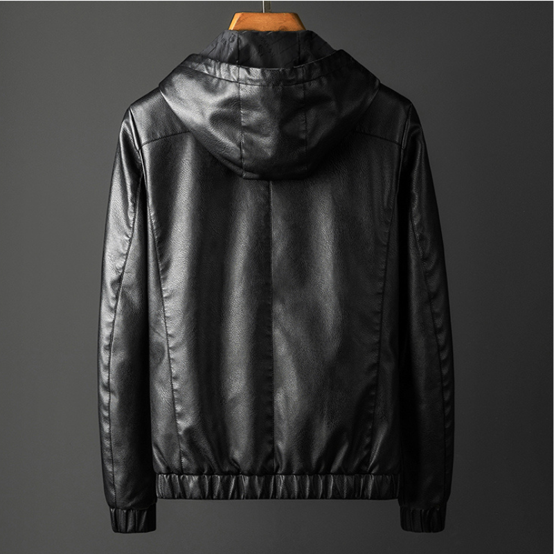 Crafted from supple premium leather, this lightweight hooded jacket offers a modern twist on timeless outerwear. Featuring a sleek silhouette with ribbed cuffs and hem, it combines elevated style with everyday versatility for a polished yet casual look.