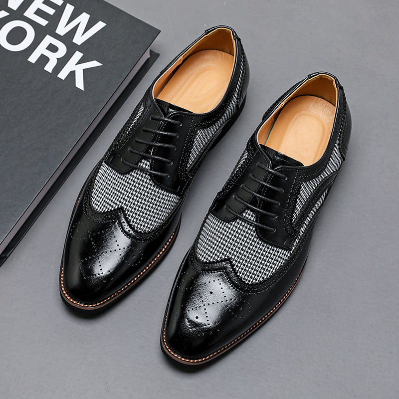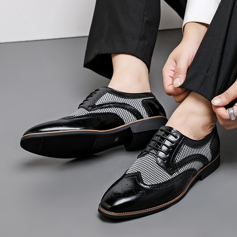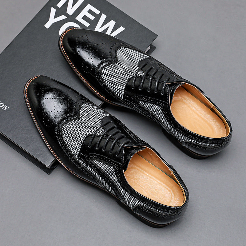 Crafted from genuine leather with a bold houndstooth pattern, these dress shoes combine a sleek profile with wearable comfort. The breathable lining and supportive heel promote a smooth roll through each stride, keeping each step light yet grounded.