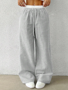 Crafted from lightweight and breathable cotton, these wide-leg pants are perfect for effortless comfort and style. The subtle pinstripe design and elastic waistband with a drawstring add a timeless, relaxed touch for lounging or casual outings.