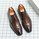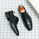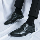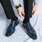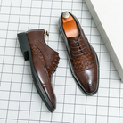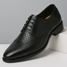 Crafted from genuine leather, this pair features sharp brogue detailing and a quilted texture across the upper. A cushioned insole and structured silhouette bring all-day comfort without compromising the clean, polished finish that defines every step.