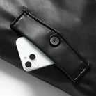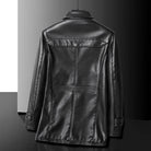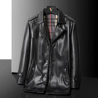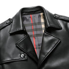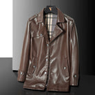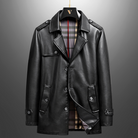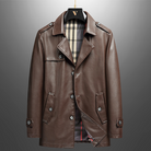 Crafted from premium leather, this coat exudes timeless sophistication with a sleek, tailored silhouette. The classic plaid lining adds a refined touch, while the durable button-front design ensures versatile wear for the fall.
