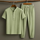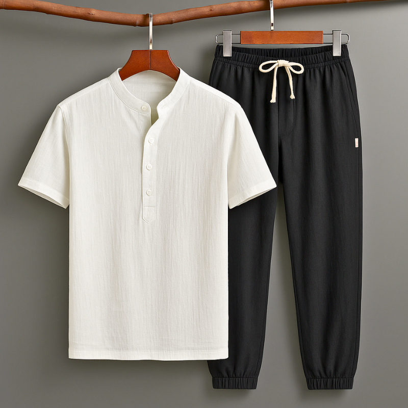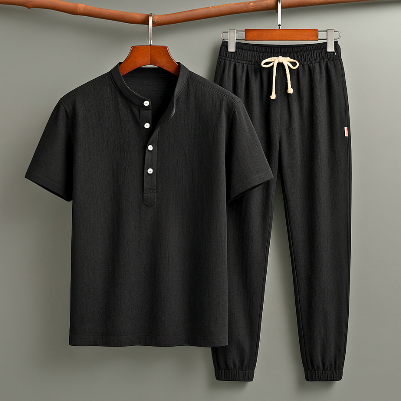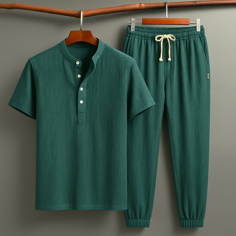 Not just your average linen set, this matching set provides comfort with its breathable gossamer linen blend. It's sleek design and premium materials keep you on the move with an effortless sense of breeziness.