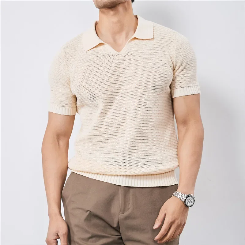 Crafted from our signature airy weave, this knit polo delivers an easy drape with a polished edge. Tailored with our open placket collar and ribbed trim for an ultra-comfortable, all-day fit.