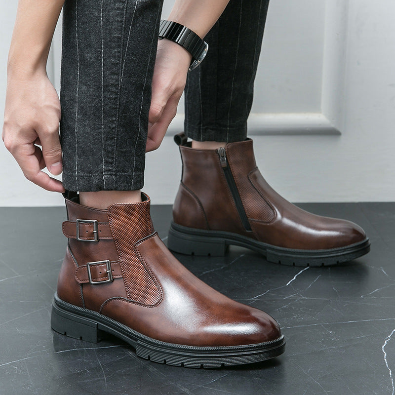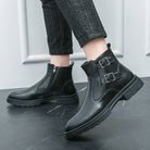 Step into confidence with our Maverick Leather Biker Boots, crafted from genuine leather and designed to stand the test of time. Featuring double buckles for that extra edge, and elastic side panels and zippers for easy on and off, these boots are your perfect road companion.