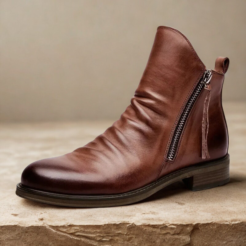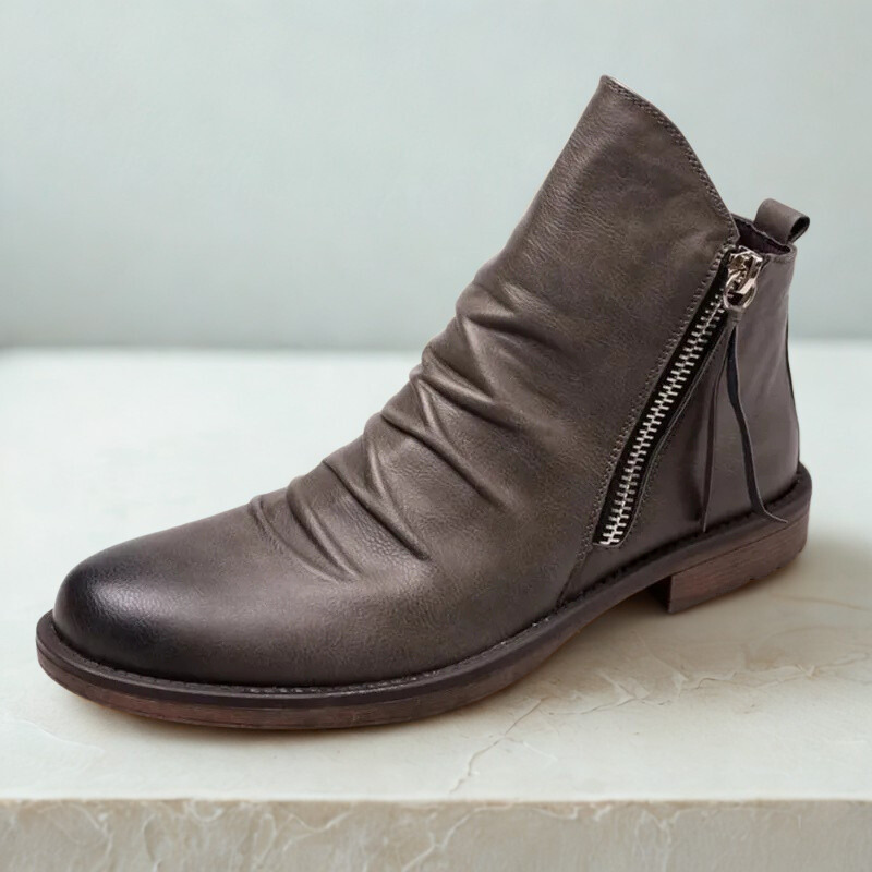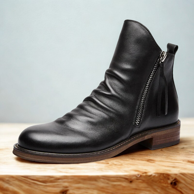 Crafted from genuine leather, these boots are built for bold days and easy wear. The side-zip entry and rugged outsole are tailored for grounded comfort wherever you go.