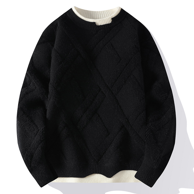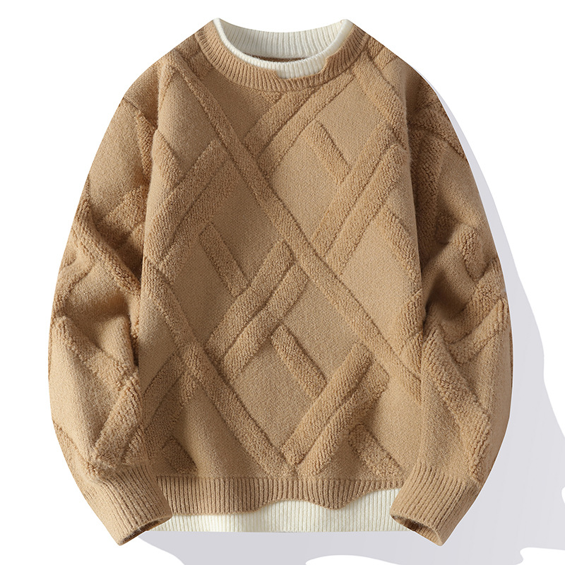 Elevate your layering game with this ultra-soft sweater, crafted from a premium wool blend for unmatched comfort and warmth. Featuring a dimensional crosshatch pattern and a unique double-layered collar, it’s a stylish piece that seamlessly blends texture and design.