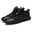 Step into luxury with these high-top sneakers that blend sleek, genuine leather and striking red accents for a look that's as stylish as it is street-smart. The cushioned sole offers unparalleled comfort, making every step a pleasure.