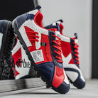 Engineered with a technical climbing-inspired aesthetic, these mixed-material sneakers combine mesh panels, suede overlays, and utility details for an adventurous urban look. The rugged construction channels outdoor exploration while delivering street-ready style built for city adventures.