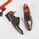Crafted from genuine Italian leather, these polished dress shoes feature a sleek pointed toe and a double monk strap design for a sophisticated look. The soft sole ensures every step is taken in supreme comfort, making them perfect for any setting, from office floors to social evenings.