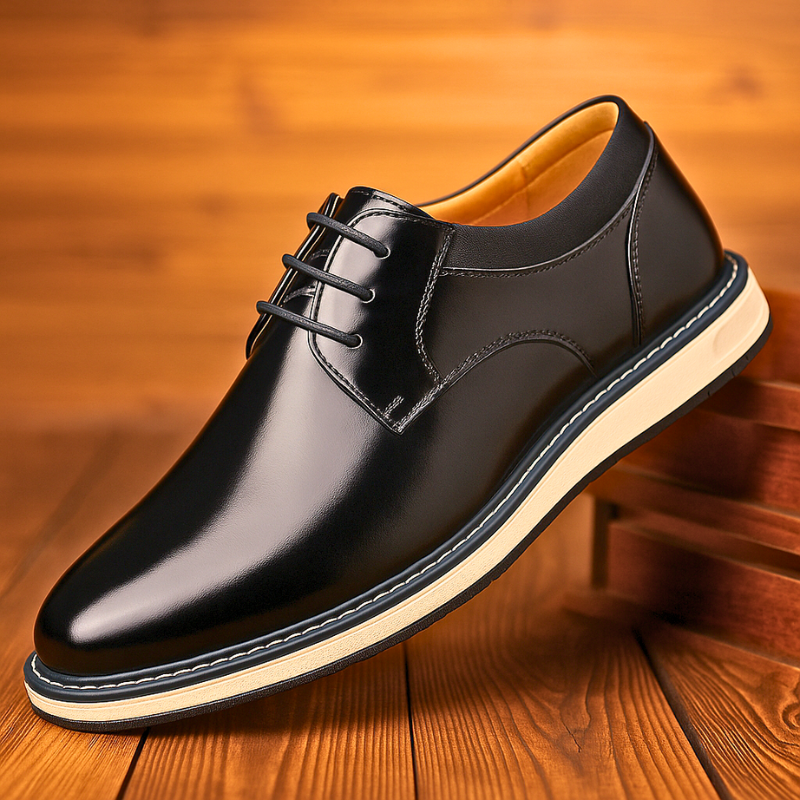 Crafted with our signature polished leather and engineered for modern comfort, these shoes balance timeless craftsmanship with a sleek finish. A supportive interior and shock-absorbing sole make them your new go-to.