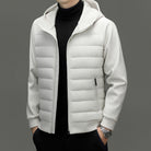 Feel the warmth without the weight in this quilted down jacket, crafted with softshell lycra for mobility and a snug hood—ideal for both city streets and country trails. Its sleek design keeps you stylish and comfortable wherever you go.