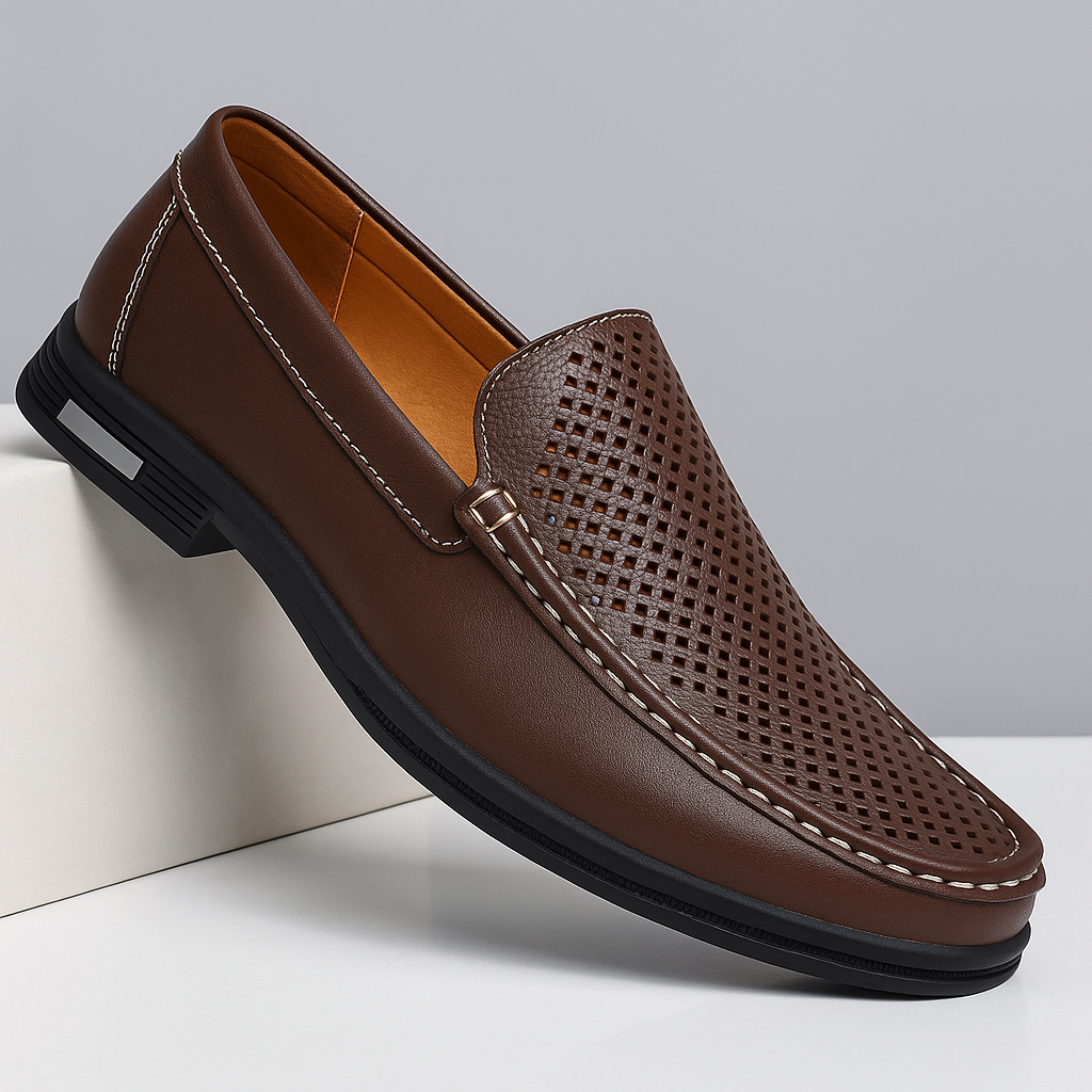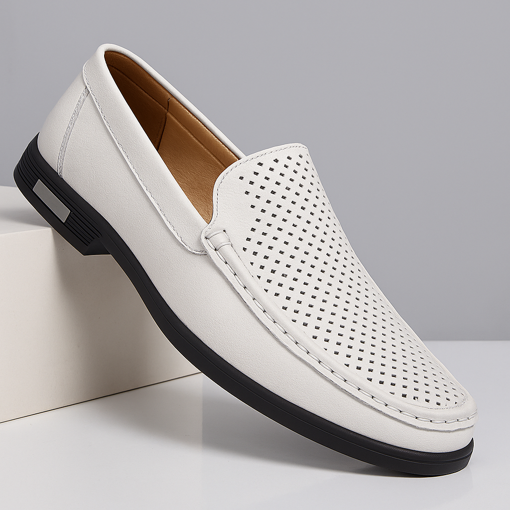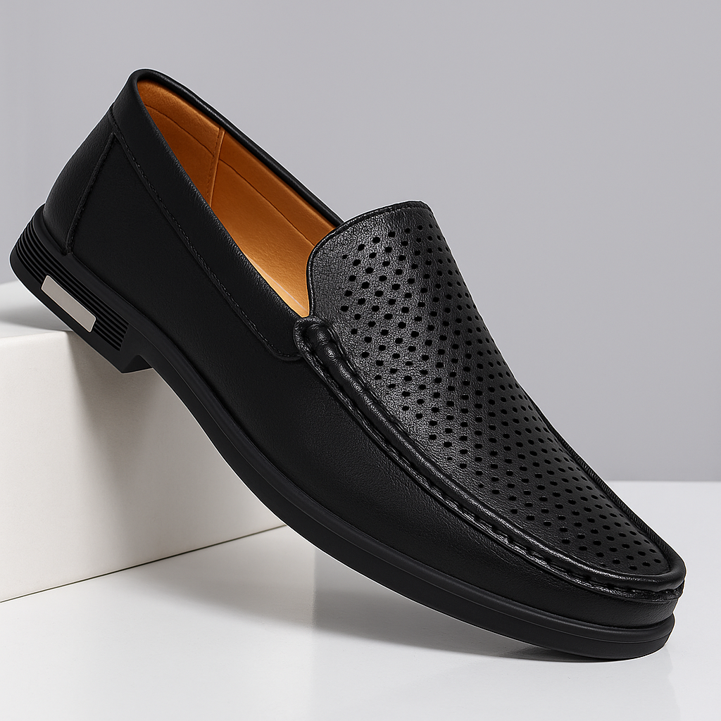 Crafted from Italian genuine leather, these loafers feature a breathable perforated upper that keeps air flowing with every step. The cushioned insole cradles your feet in comfort, and the tough outsole provides a reliable grip all day long.