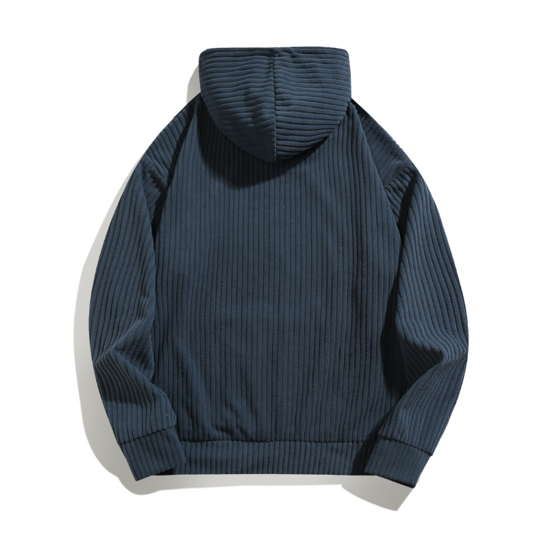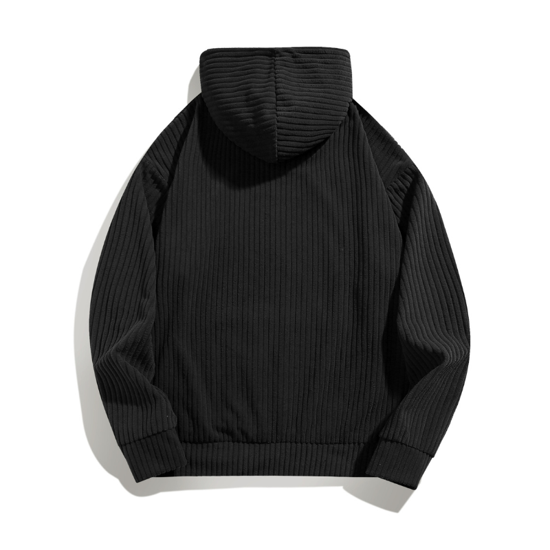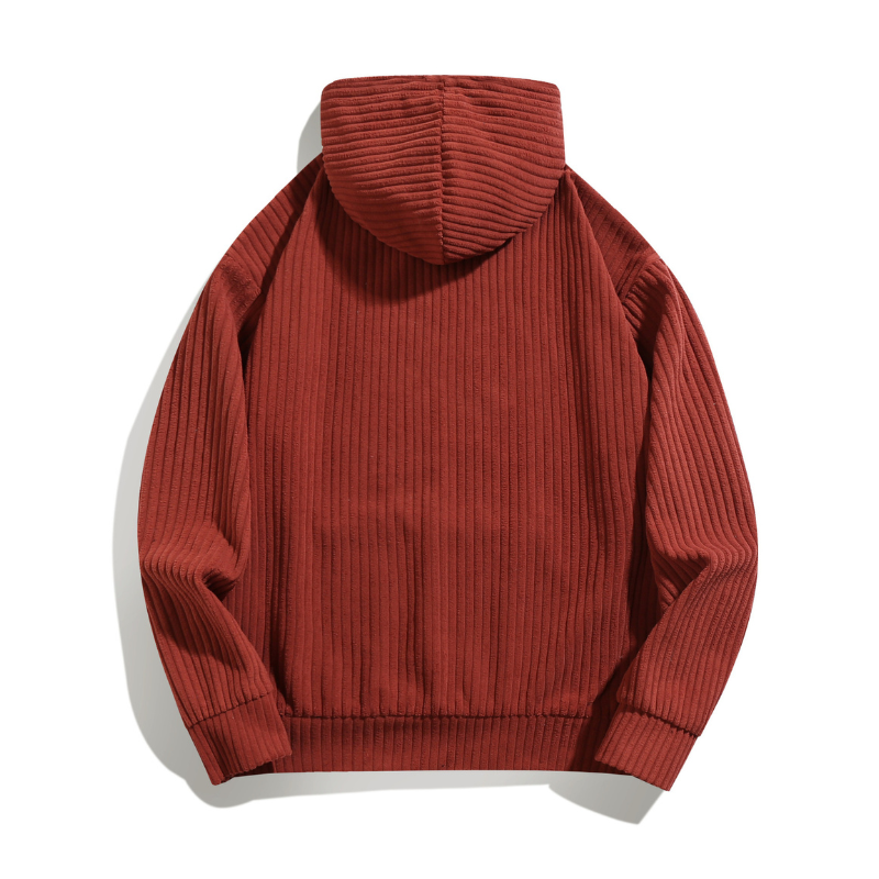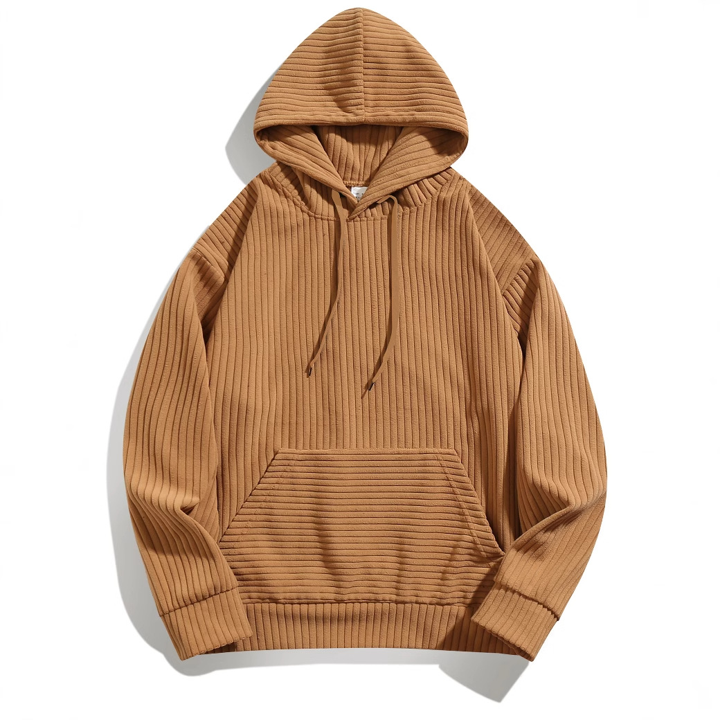 This hoodie is crafted from a soft rib-knit cotton blend, offering a unique textured feel and elevated comfort. Its relaxed fit and classic kangaroo pocket make it a go-to for cozy layering or stand-alone wear.