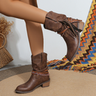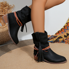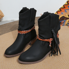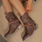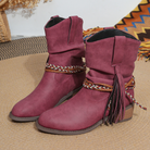 Crafted from supple leather, these boots bring timeless western style with country vibes. Featuring braided accents, fringe tassels, and a slouchy silhouette, they’re the perfect companion for strolls through town or evenings by the fire.
