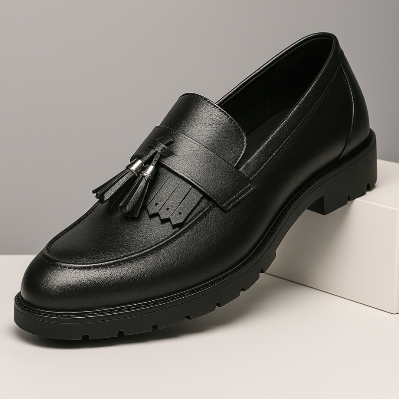 Crafted from genuine leather, these tassel loafers deliver unmatched comfort with a that gets better with each wear. The cushioned interior and flexible construction create a perfect fit for long days at the office or weekend outings.