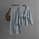 Redefine cozy elegance with this cardigan set, crafted from a premium wool blend for all-day softness and warmth. The braided accents and tailored silhouette make it perfect for lounging at home or stepping out in effortless style.