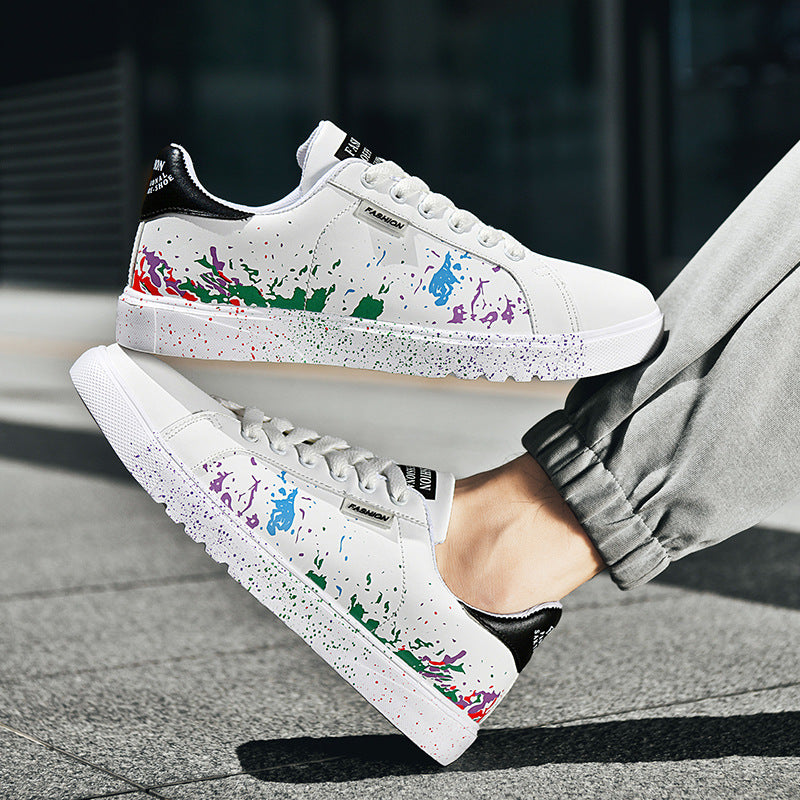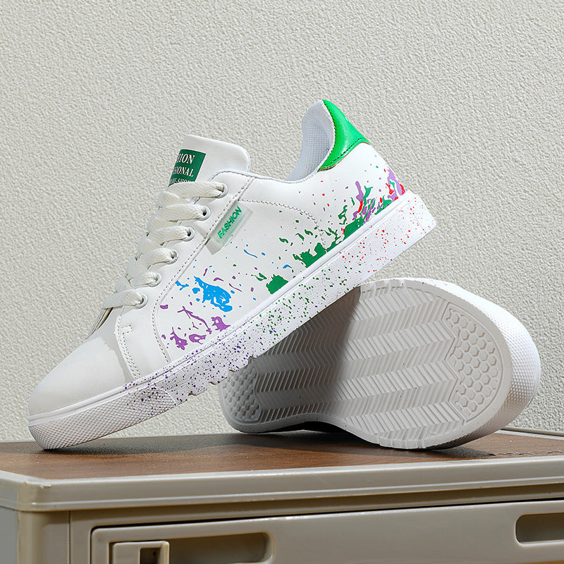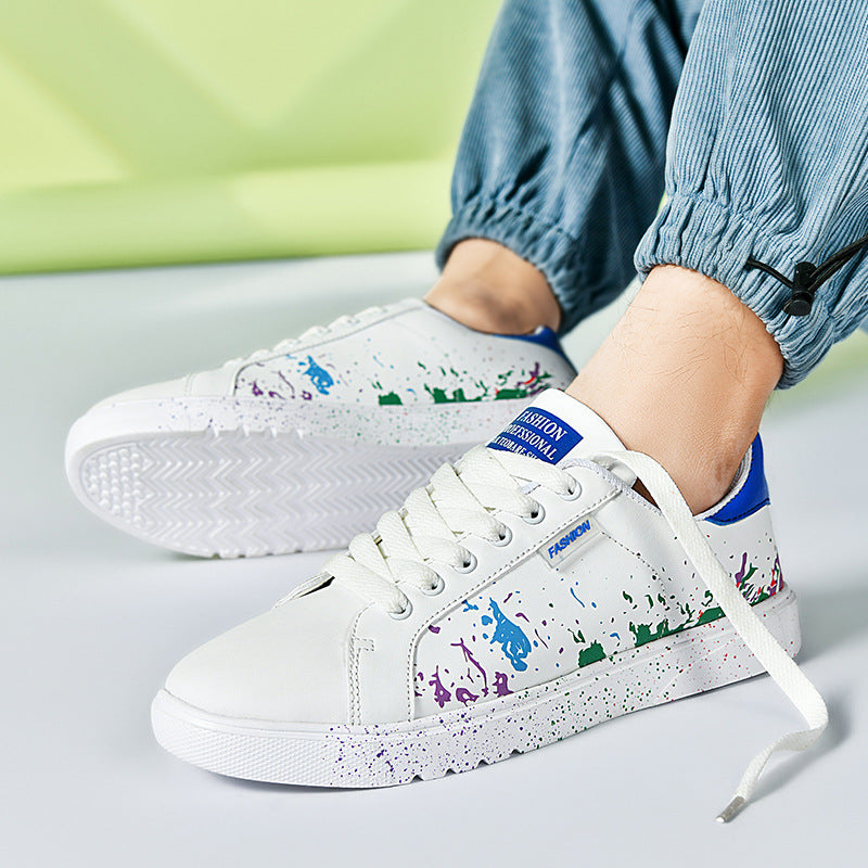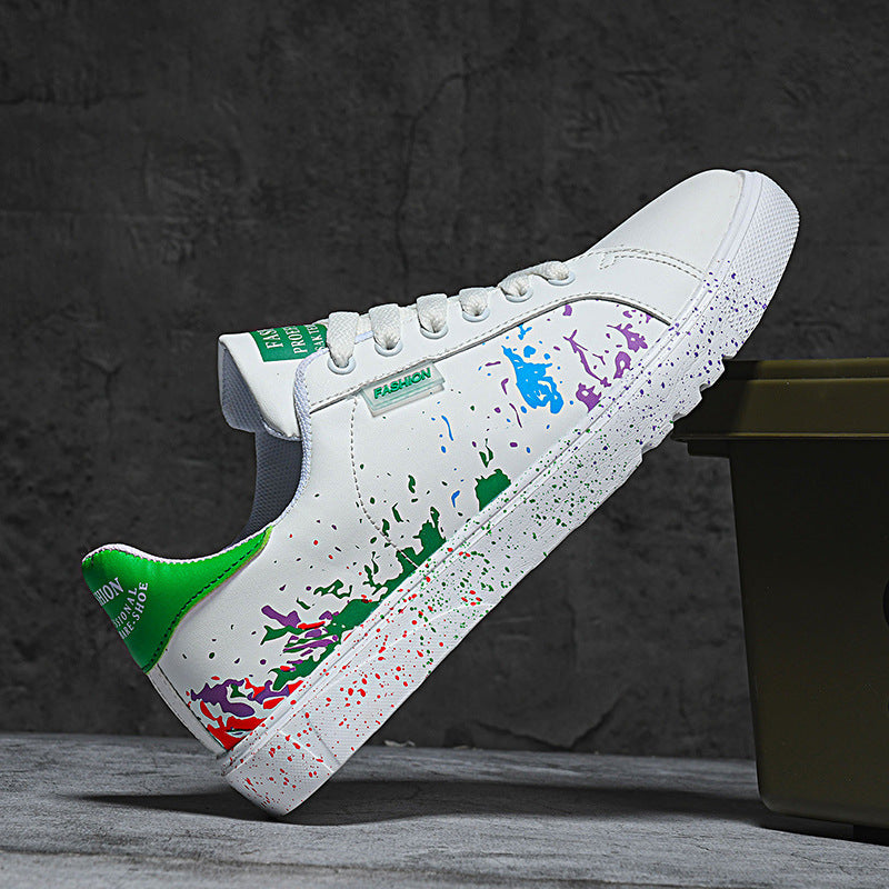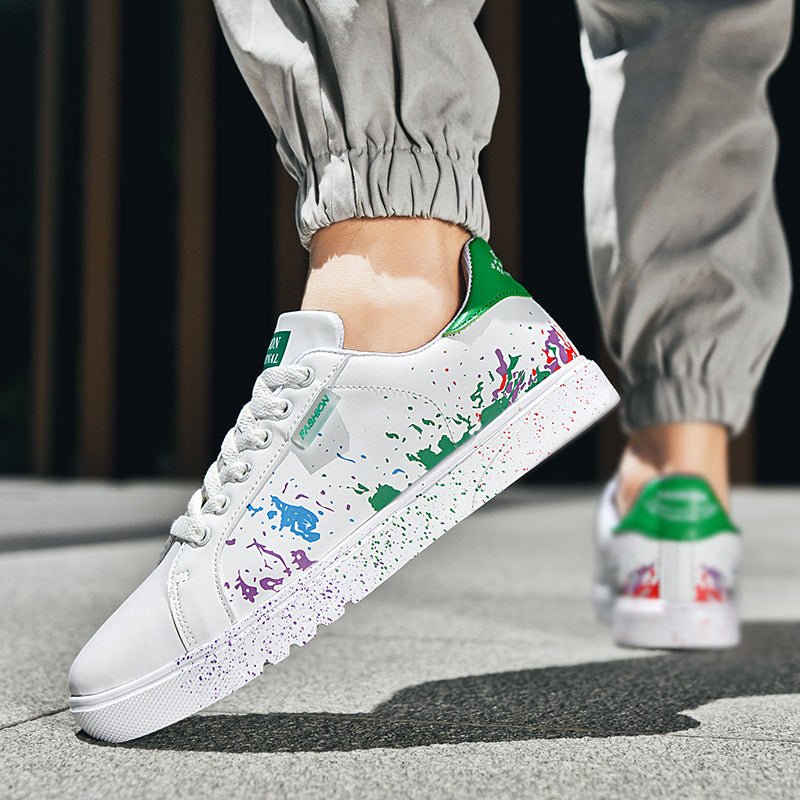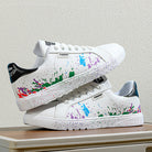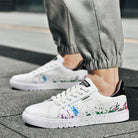 Step out and make a statement with these eye-catching sneakers, featuring a unique paint splatter design on premium leather. They're crafted for comfort with a cushioned sole and built tough for the streets.