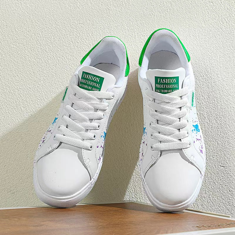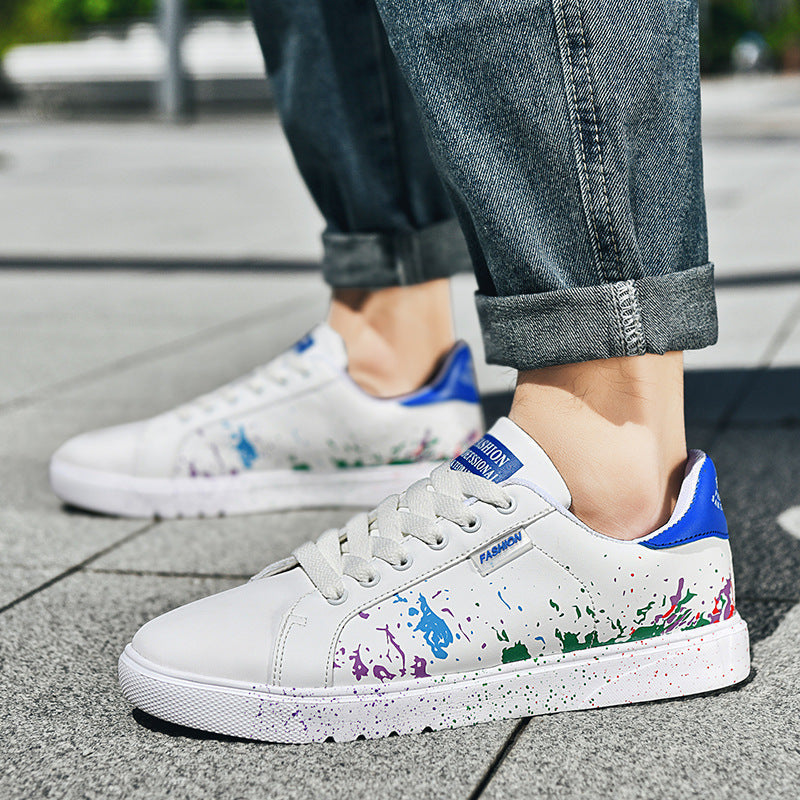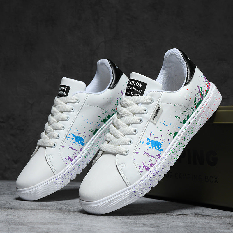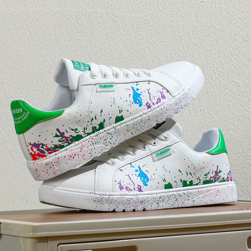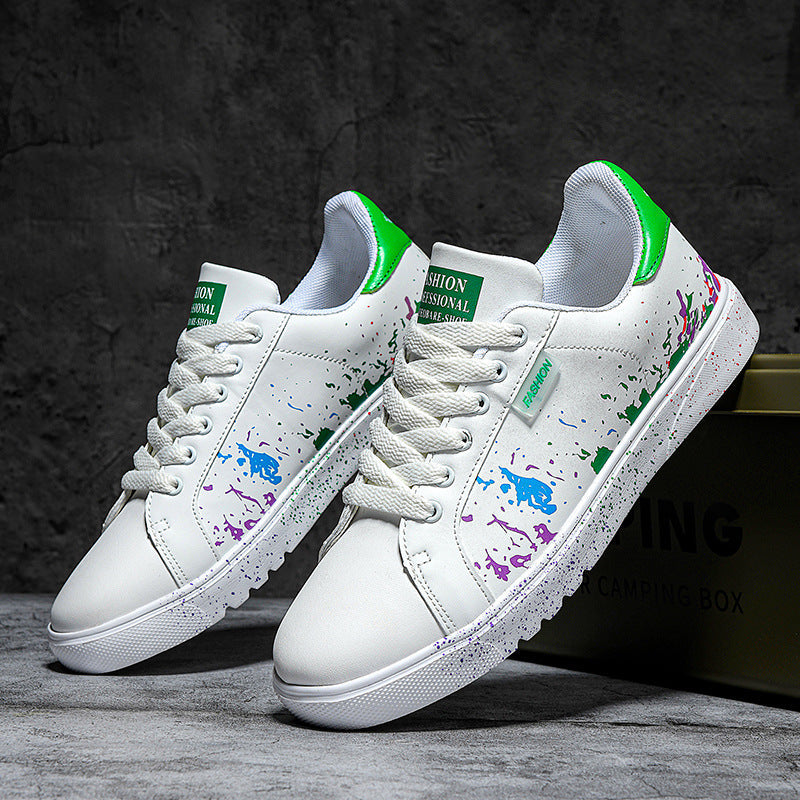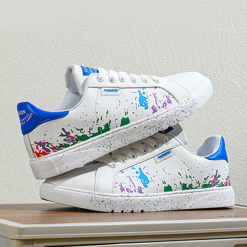 Step out and make a statement with these eye-catching sneakers, featuring a unique paint splatter design on premium leather. They're crafted for comfort with a cushioned sole and built tough for the streets.