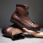 Restoring the bold, vintage look of classic military design, these Torreto Genuine Leather Boots are meticulously stitched and crafted from premium genuine leather. Featuring a cushioned sole for unbeatable comfort, they'll be your go-to for both casual wear and outdoor adventures—truly the best boots you'll ever own.