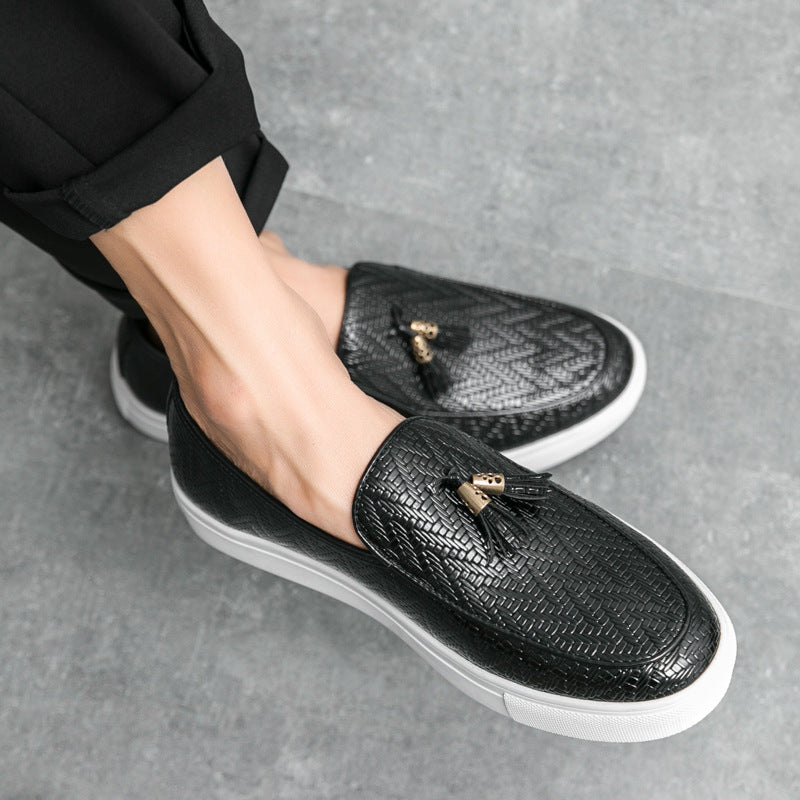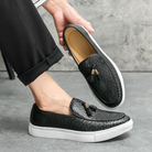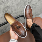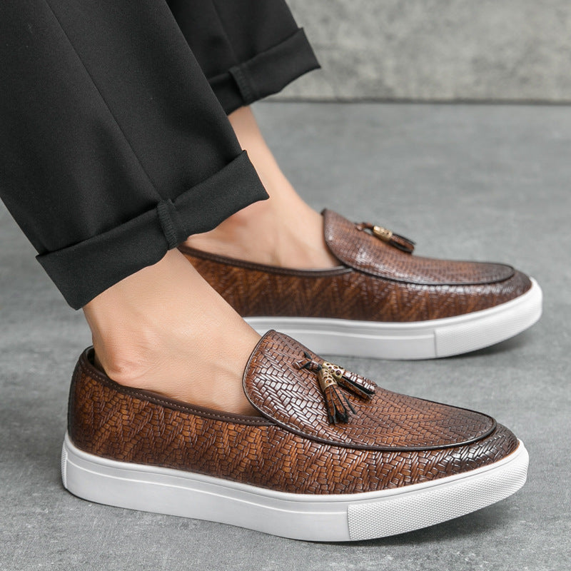 Crafted from genuine leather with a cushioned insole and lightweight rubber outsole, these loafers deliver all-day comfort with a polished edge. The woven-texture design and tassel detail offer standout style that moves easily from day to night.