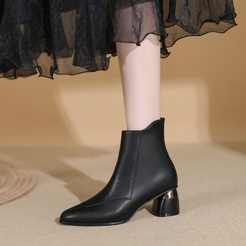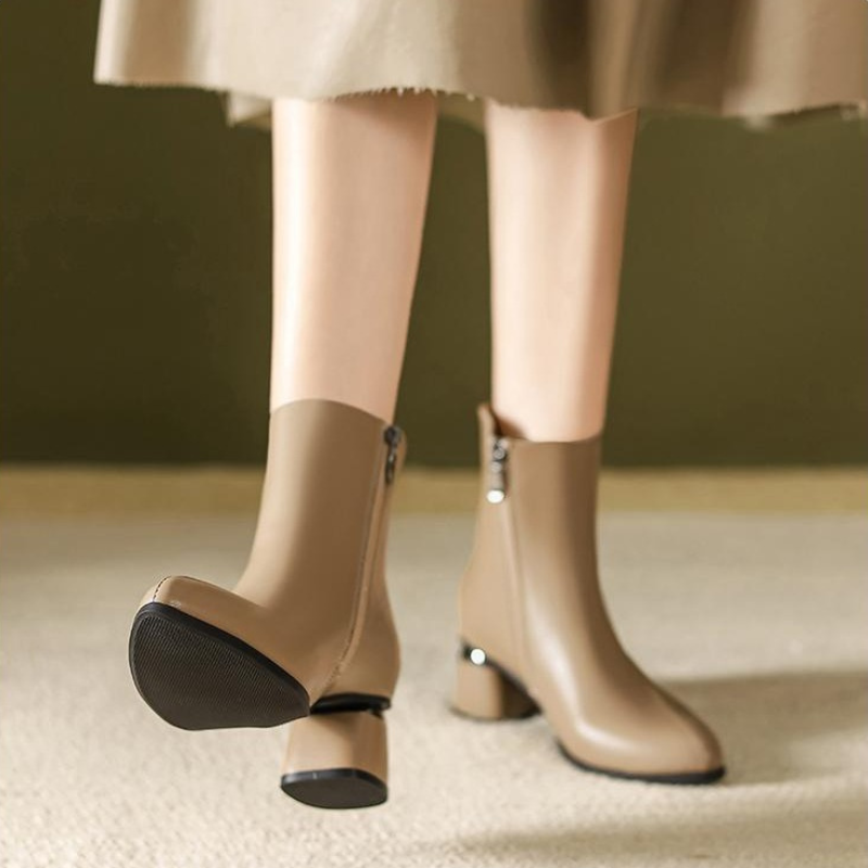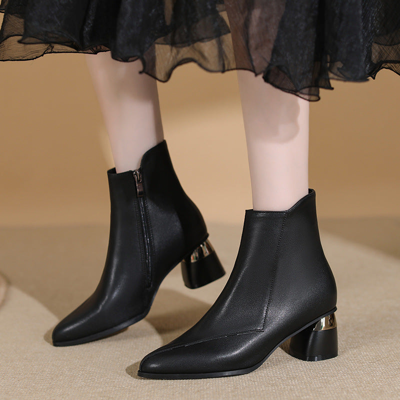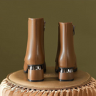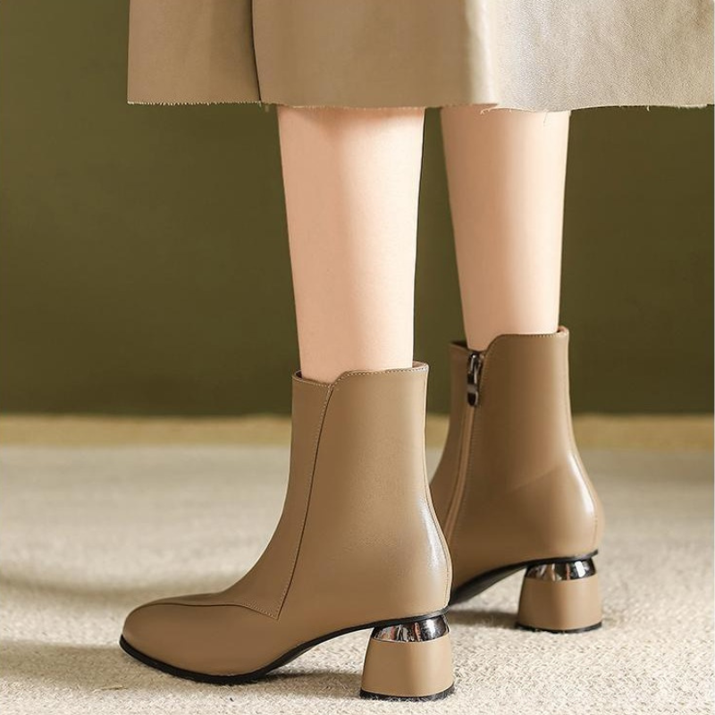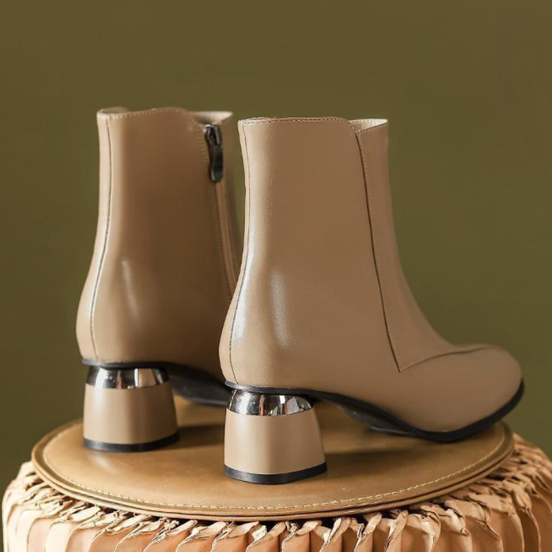 Featuring a sleek, seductive design, these leather boots pack just the right amount of attitude with their sculpted metallic heels. Its comfortable insole and side-zip closure ensure that you step out in chic style.