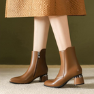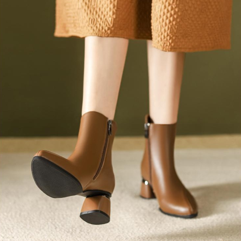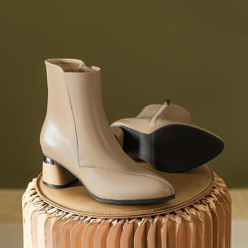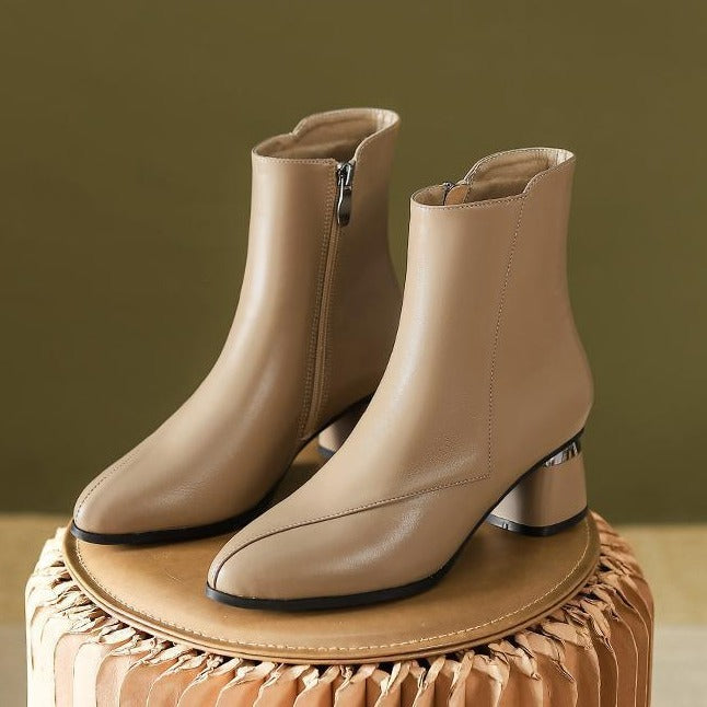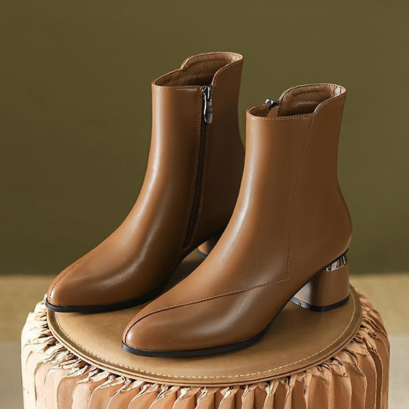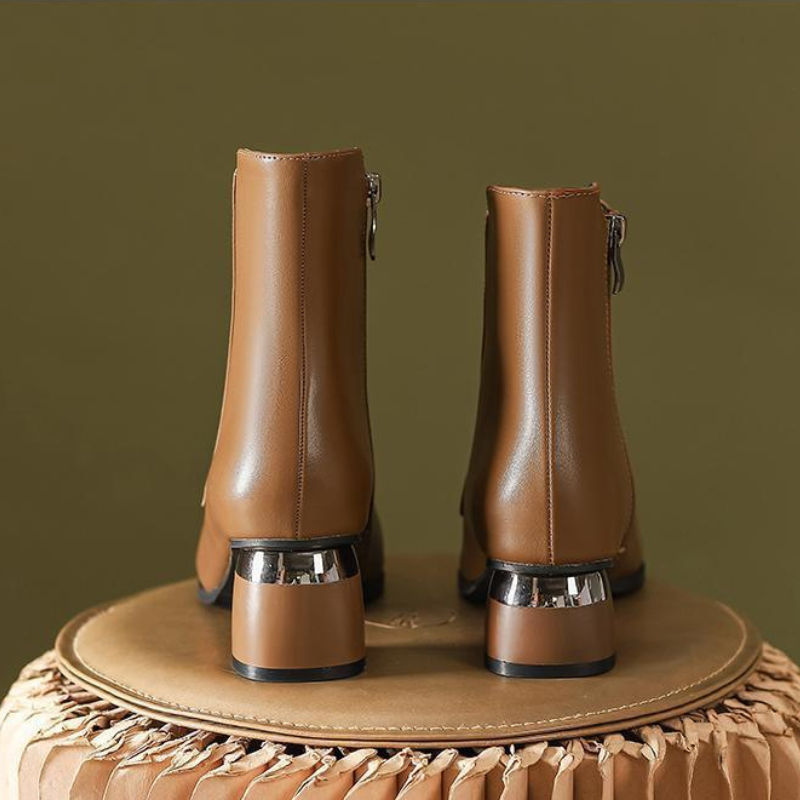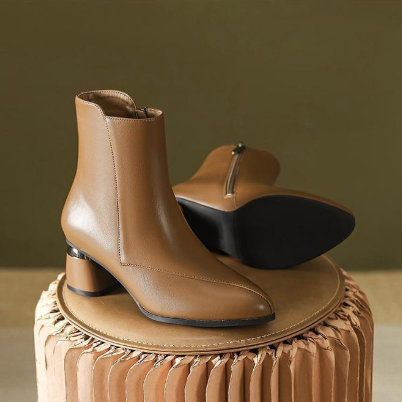 Featuring a sleek, seductive design, these leather boots pack just the right amount of attitude with their sculpted metallic heels. Its comfortable insole and side-zip closure ensure that you step out in chic style.
