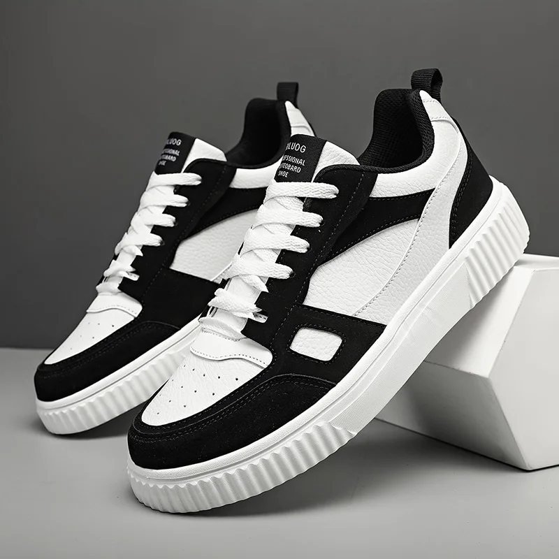 Crafted with a sleek combination of premium leather and breathable mesh, these sneakers are designed to provide all-day comfort and urban style. The bold contrast panels and textured sole make them a perfect match for everything from casual outings to active lifestyles.